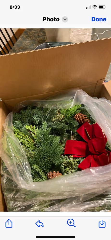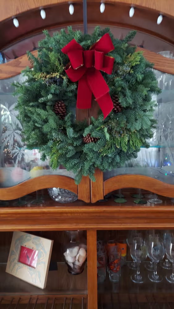 - Pair it with string lights, candles, or vintage ornaments for a cozy, nostalgic feel — or keep it simple and let the natural evergreens and ribbon do the talking.