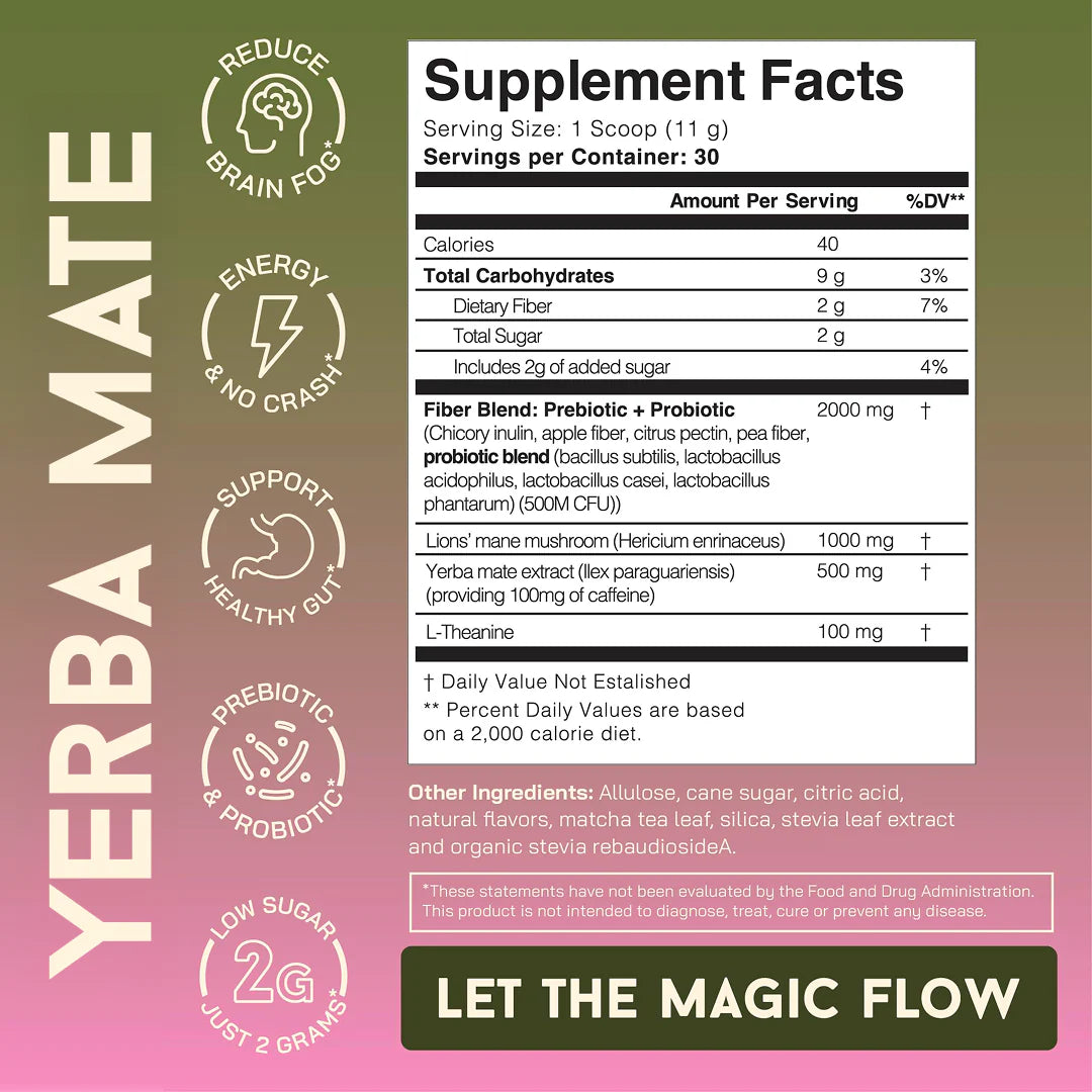 Meet the Yerba Mate Powder that’s changing the energy game. This isn’t your average caffeine hit—it’s a smart blend of natural stimulants, brain-boosting nootropics, and gut-friendly fiber that fuels your focus without the crash.